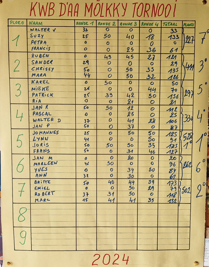Zondag 1 september organiseerde RAAK Londerzeel Sint-Jozef hun jaarlijks Mölkky tornooi. Ditmaal kwamen 28 gemotiveerde spelers opdagen om in temperaturen van ongeveer 31 graden -het was bloedheet- hun tornooi te spelen om zo de nieuwe Kampioen van D’Aa te kunnen worden. Gelukkig konden we zoals de voorbije jaren rekenen op de steun van KAJ D’Aa, die ons tussen elk spel in konden voorzien van frisse drank en even wat schaduw in hun lokaal. Een welgemeende merci daarvoor aan Britte en Emiel.