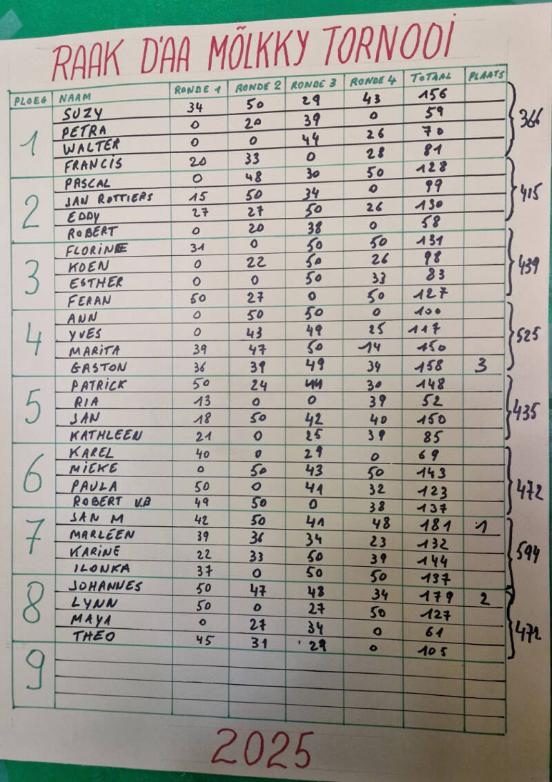 Acht ploegen van 4 spelers konden na een korte uitleg van de spelregels van start gaan. Onder de 32 spelers ook een behoorlijk aantal nieuwe deelnemers, wat heel positief is.